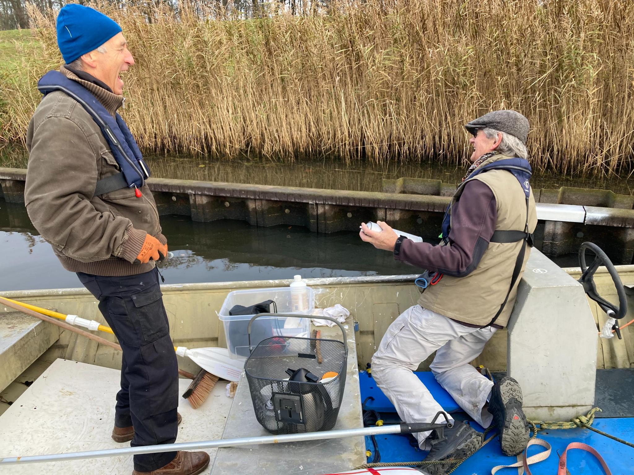 En een aantal leden van de klusploeg heeft in enkele frisse maar droge sessies de uitklimtrapjes en vluchtroutes in de damwandbeschoeiing weer van helder witte markeringen voorzien🛠.